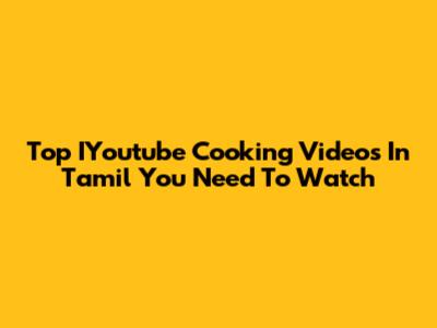Top IYoutube Cooking Videos In Tamil You Need To Watch