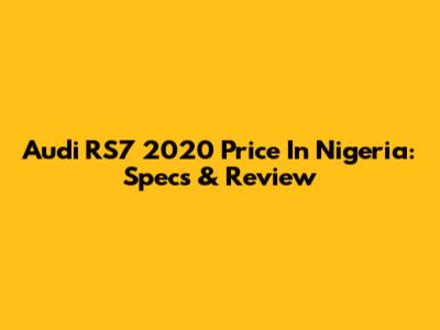 Audi RS7 2020 Price In Nigeria: Specs & Review